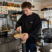 作業する時に裏起毛だと暑いし、ゴツすぎるスウェットだと動きにくいので限りなくストレスがなく形の良い、程よい厚みのボディーを選択しました。