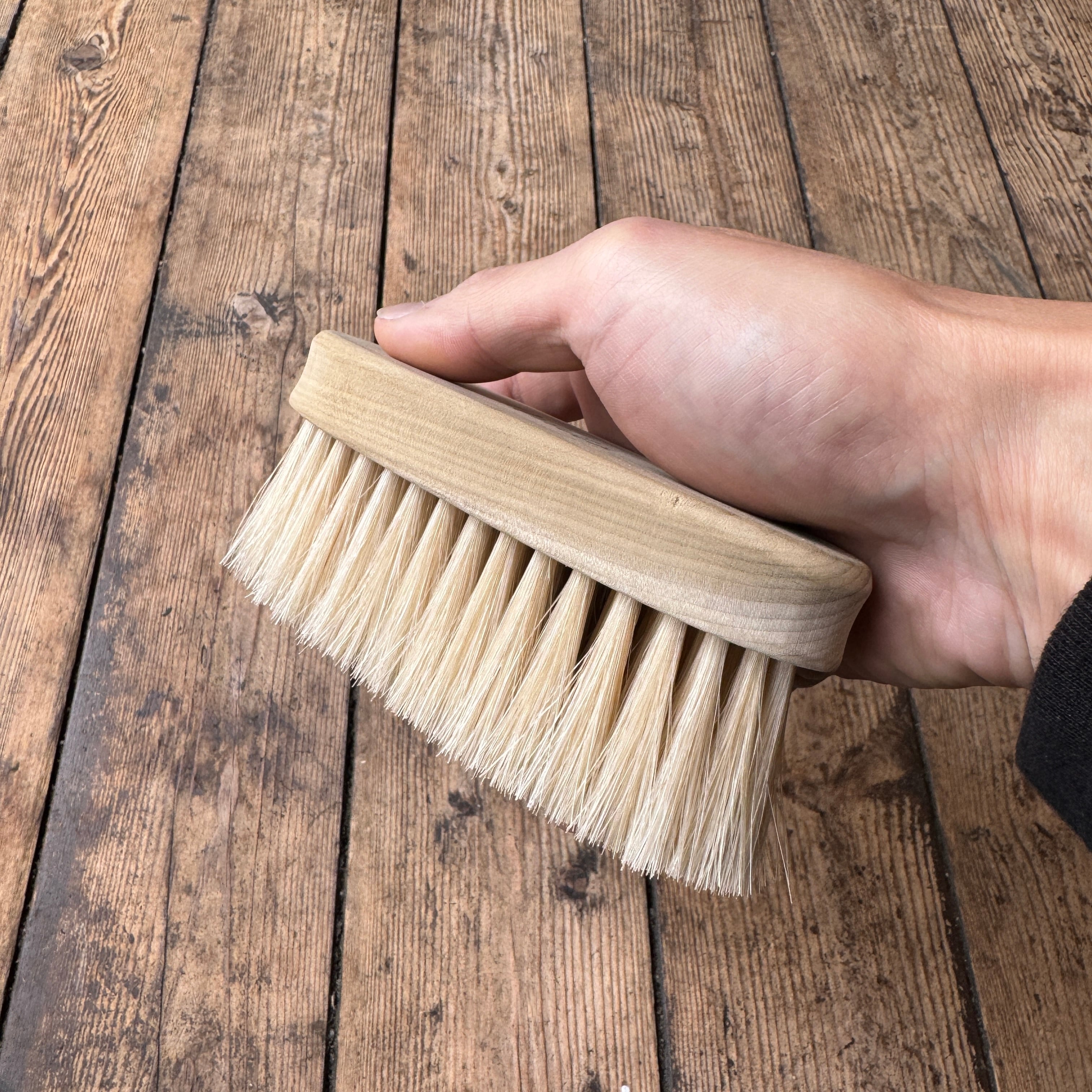 馬毛は柔らかく、デリケートな革にも優しい万能ブラシ。